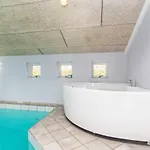 Die Langeland Beach Home With Sauna verfügt über ein Badezimmer mit einer getrennten Toilette, einem Whirlpool und einer Waschmaschine. Außerdem gibt es einen Wäschetrockner.